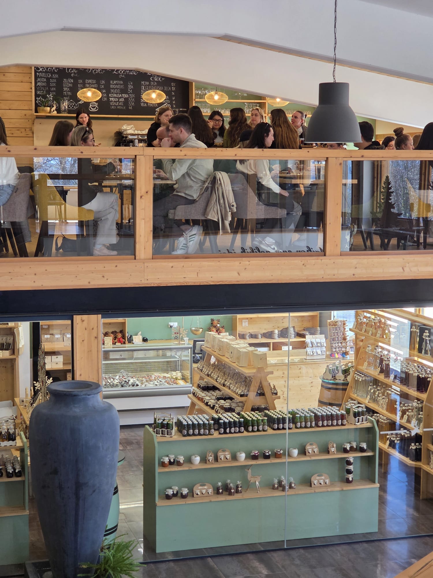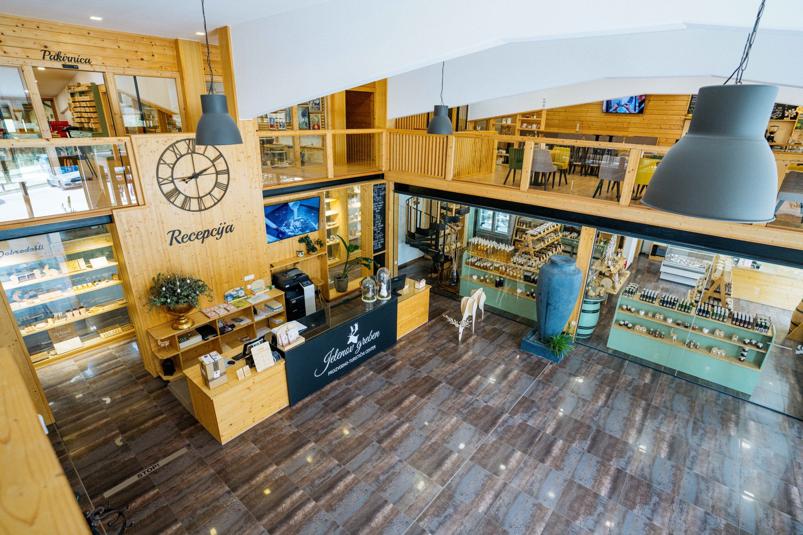 - Trgovina: Na koncu ogleda pokukajte v našo trgovino kjer vam ponujamo pester izbor domačih sokov, žganic, medov, piškotov, marmelad, suhomesnatih izdelkov, 100% bučno olje, jabolčni kis, lesenih dekoracij, kuhinjskih desk, različnih darilnih paketov, za vse priložnosti.